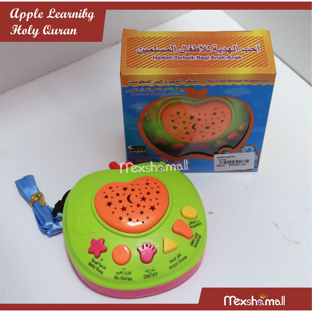 Mainan edukatif apple learning quran adalah mainan anak bentuk apple yang bisa digunakan sebagai alat bantu belajar doa doa harian surat pendek doa sholat nasyid dan sebagai lampu proyektor. Apple learning holy quran machine apple quran adalah mainan edukatif islami kualitas eksport harga grosir. Mainan anak new edition ini baru saja keluar di pasaran di indonesia.